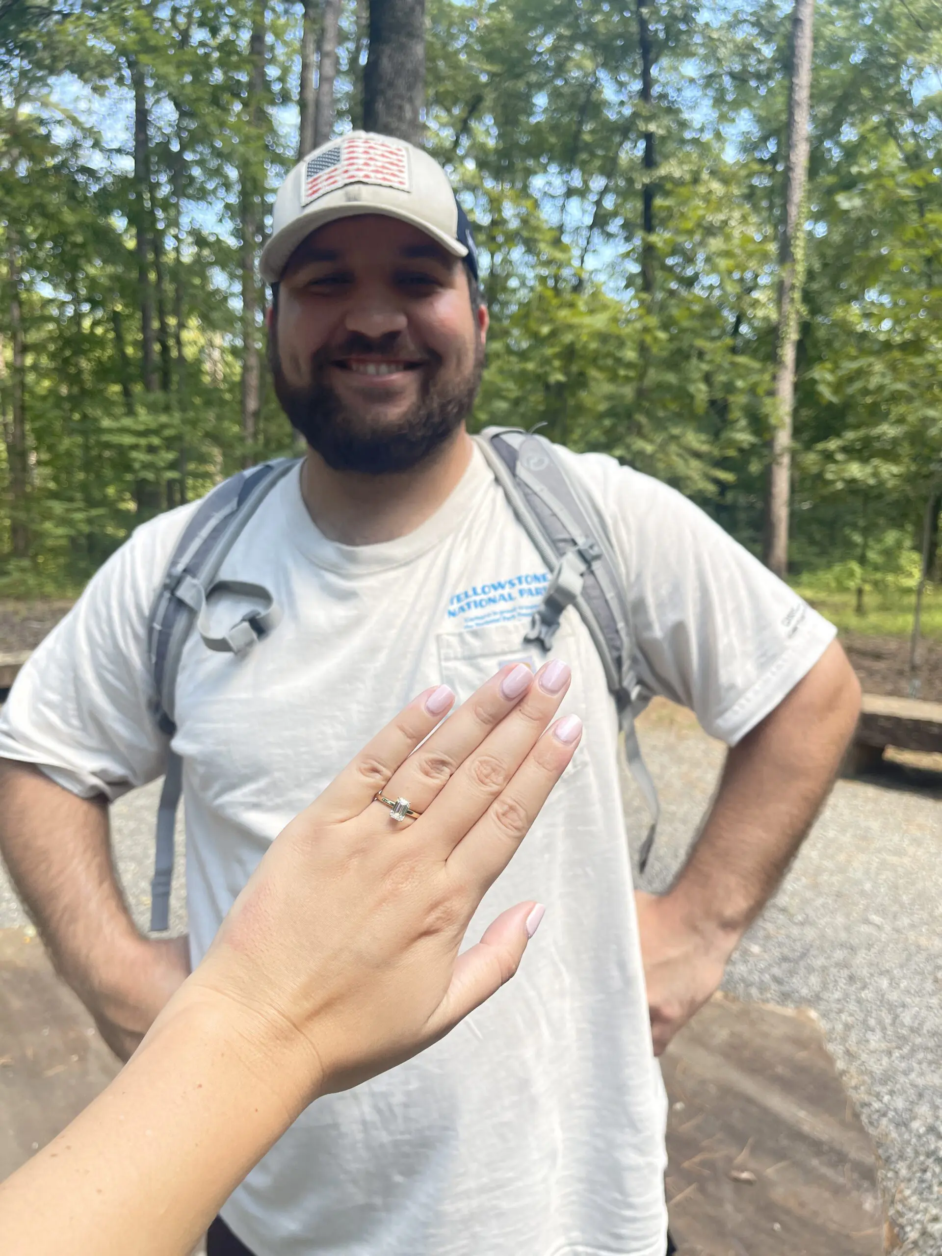 Leading into Labor Day weekend Lane and I went on a vacation to Hot Springs, Arkansas. I had a very growing suspicion he was going to propose for many reasons I will leave unsaid but it all worked out for the better. On the very last full day of our trip we went to Garvan Woodland Gardens and right as we were about to leave he pulled me onto a secluded trail and proposed! (I hate attention and he knew I didn’t want random people seeing this so it was monumental to have this moment just for us). As we traveled home we stopped off at my parents house to grab our dog and to my “surprise” there was our immediate family and friends waiting for us to celebrate!
