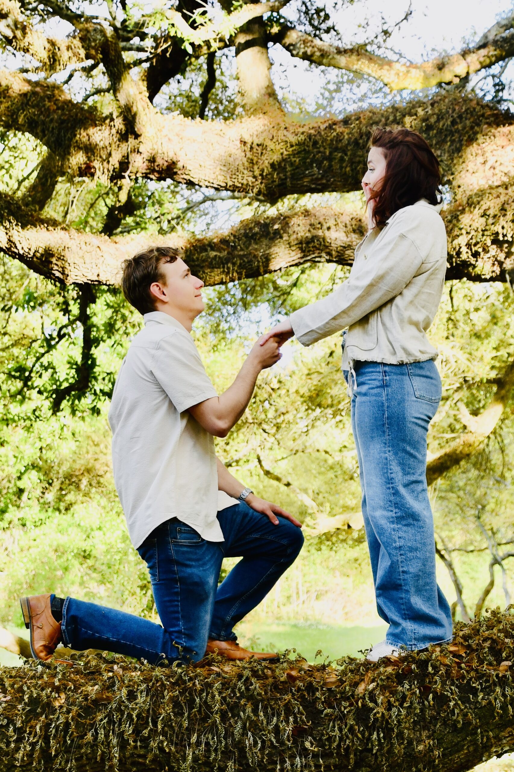 The proposal happened at Rufino‘s by the river. He was very nervous the whole night and I kinda was like suspecting a little bit, but didn’t really think anything.well then he wanted to go by the river and go look at the water and go like you know just go kind of see what’s going on then he wanted to take a picture so he went to go ask these two nice ladies to take a picture which I didn’t know they were taking a video and they took a video of him coming, and then we were taking picture and then he went on one knee and proposed