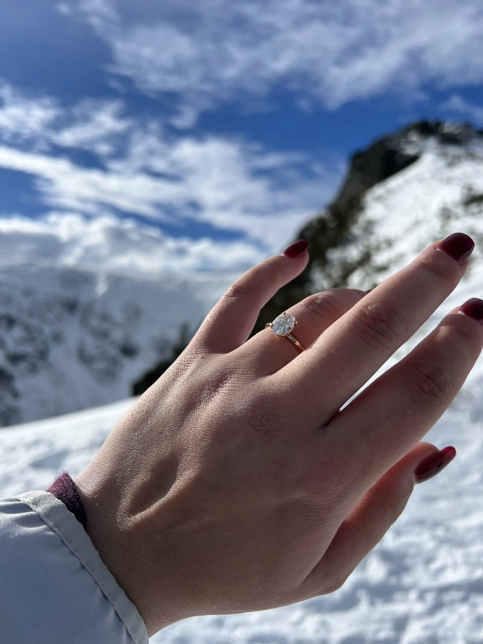 I didn’t actually have any actual input into the design of my ring. Tyler set up a design consultation with Ellie (who is AMAZING) and with the help of my sisters (who each have their rings from Dianna Rae) and photos I not so secretly sent him over the years, I got my gold, oval, solitaire of my dreams. It could not be more perfect.