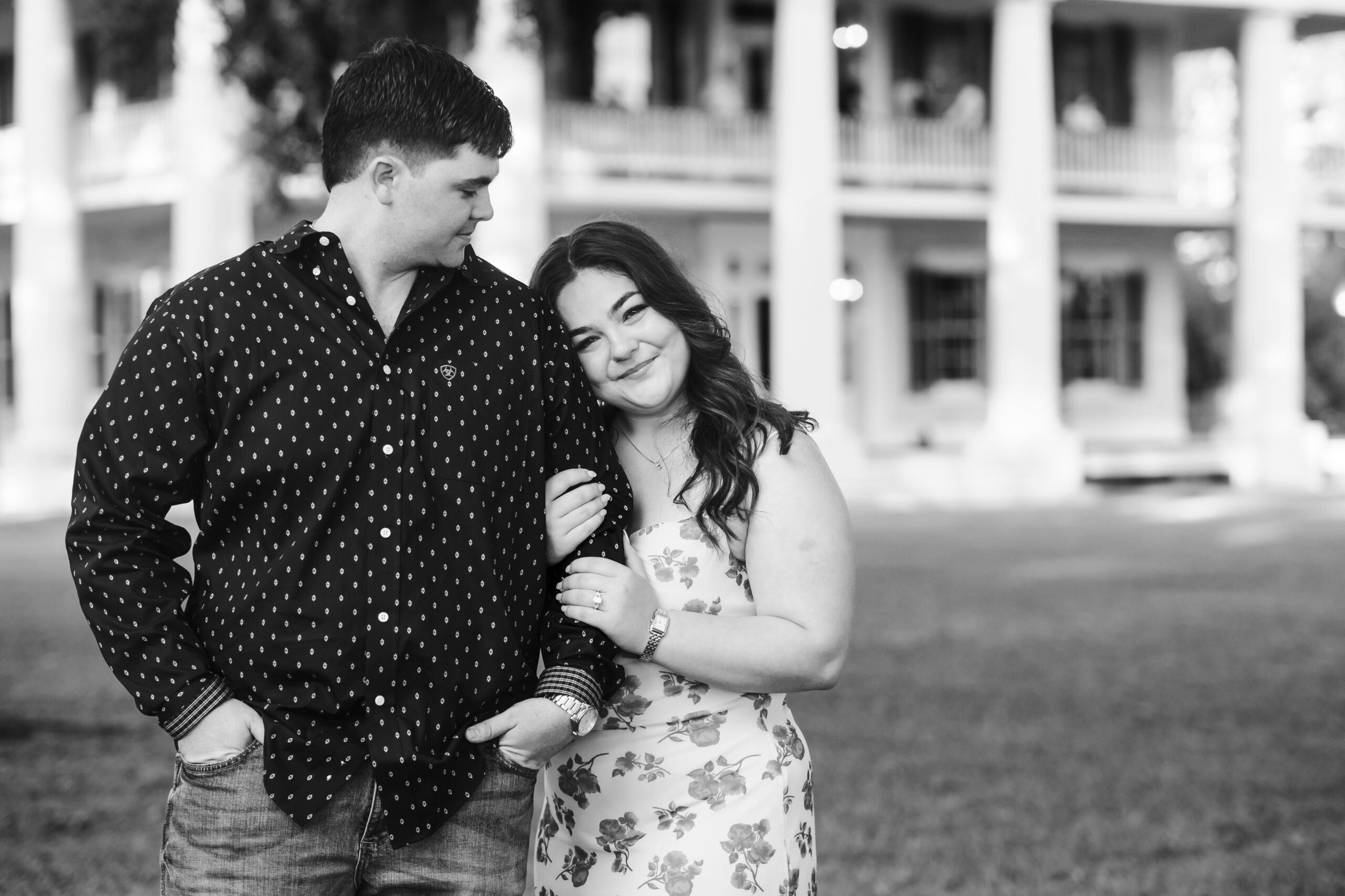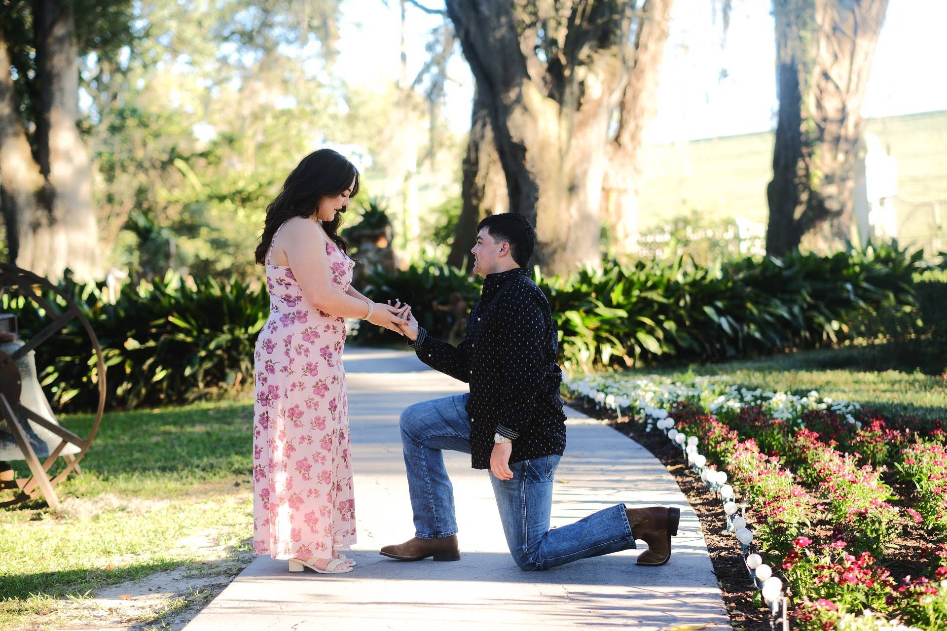 We had been talking about getting engaged for a little while before, but I was still so surprised. We were going to Baton Rouge for a concert and he set us up to have dinner at a beautiful botanical garden. I was a little suspicious but my sister and best friend did a great job in making me think that it wasn’t going to happen. We were walking around just looking at all the flowers and he said “I think this is a good spot” and when I turned around he was down on one knee!!