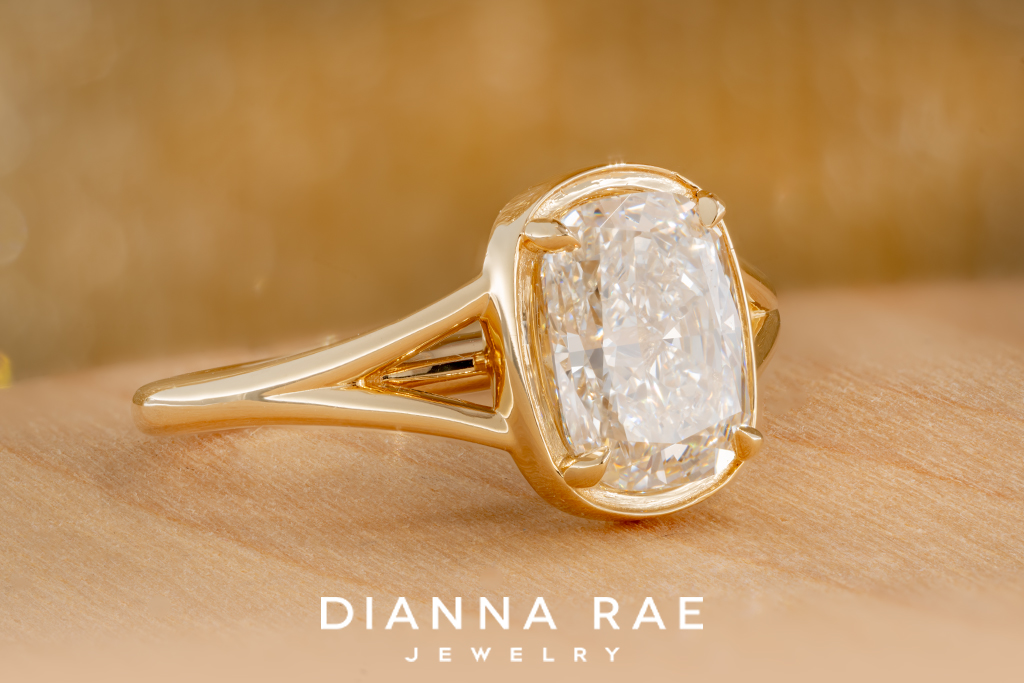 Bezel set in 14K Yellow Gold, this Elongated Cushion Diamond engagement ring is truly something special! This stunning ring features a 2.15Ct Lab-Grown Diamond center that has VVS-2 Clarity and F Color. This ring is sure to leave a lasting impression with the split shank design and claw prong detail. This gorgeous piece is a testament of uniqueness and beauty!