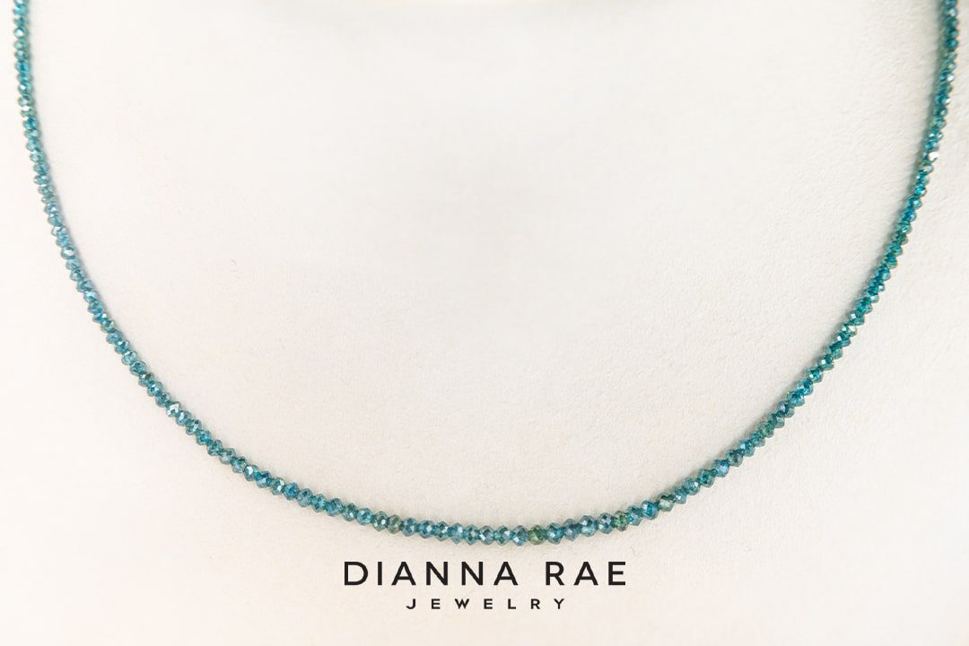 A simple and interesting choice, this blue diamond necklace can be worn alone or stacked for any occasion! This necklace is made from 14k Yellow Gold and has a length of 16 inches.